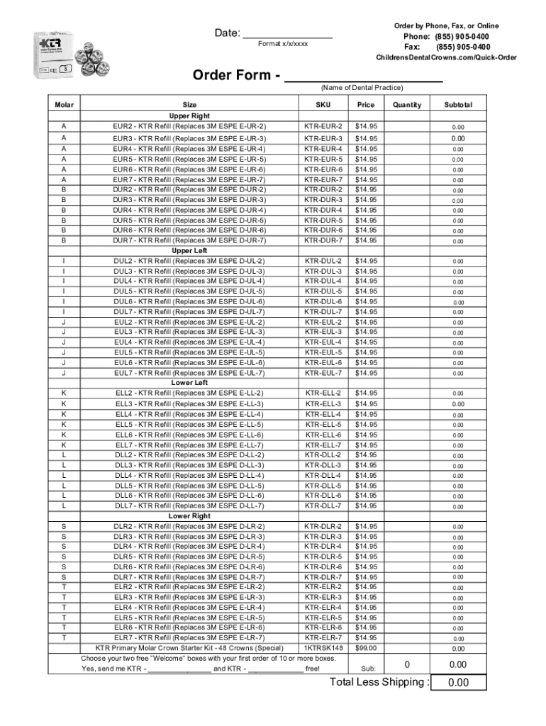 Get the free KTR Stainless Steel Primary Molar Crowns EZ Order Form. KTR Crowns