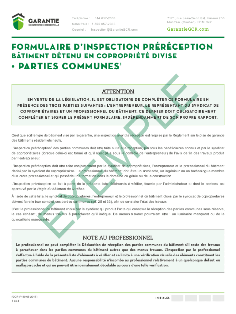 Montreal (Quebec) H1M 3N2GarantieGCR.comFORMULAIRE INSPECTION PERCEPTION