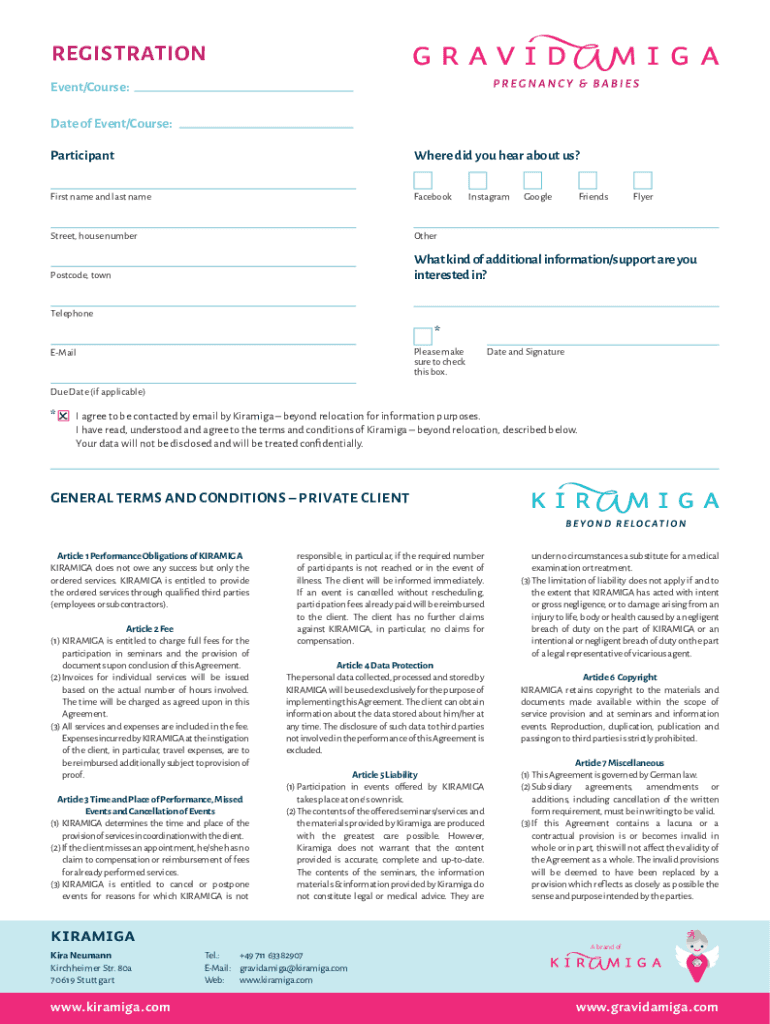 REGISTRATION Event/Course:Date of Event/Course:ParticipantWhere did you hear about us? First name and last nameFacebookInstagram GoogleStreet, house numberOtherPostcode, somewhat kind of additional