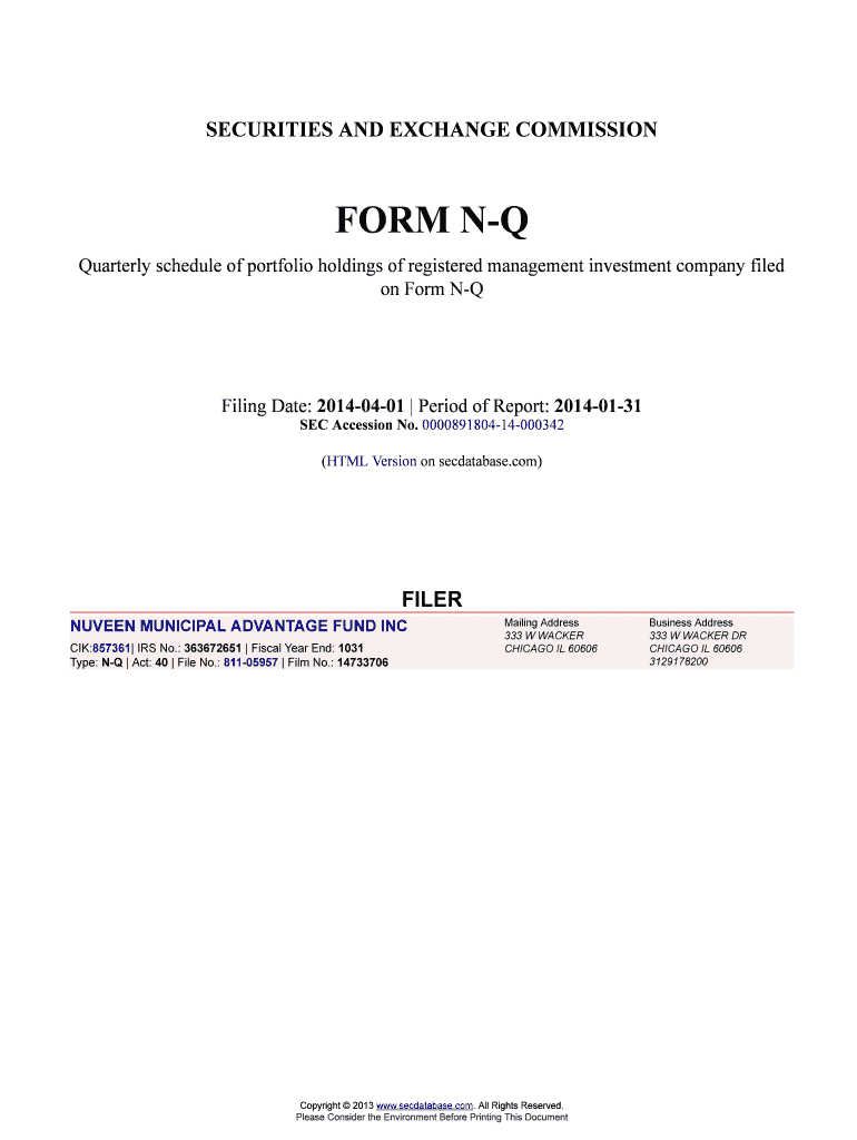 Get the free NUVEEN MUNICIPAL ADVANTAGE FUND INC Form NQ Filed 2014 ...