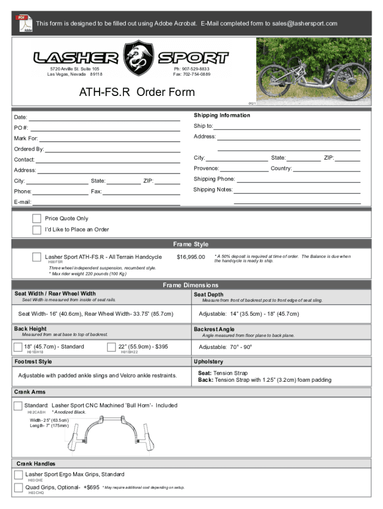 This form is designed to be filled out using Adobe Acrobat. Email completed form to sales@lashersport.comPh: 9075298833