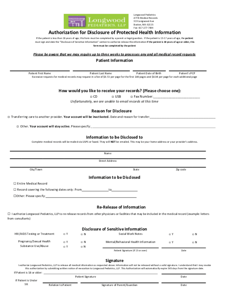 Fax: 6172777834Authorization for Disclosure of Protected Health Information