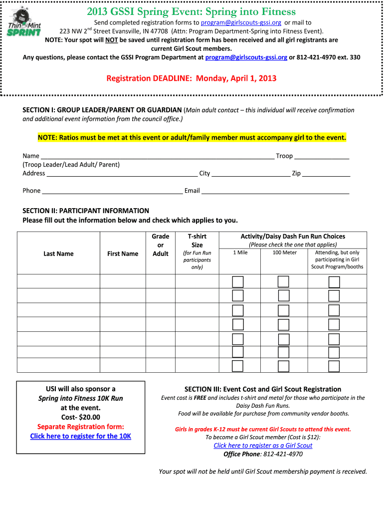 Any Girl Scout troop or leader participating in the spring program is required to file the necessary paperwork.