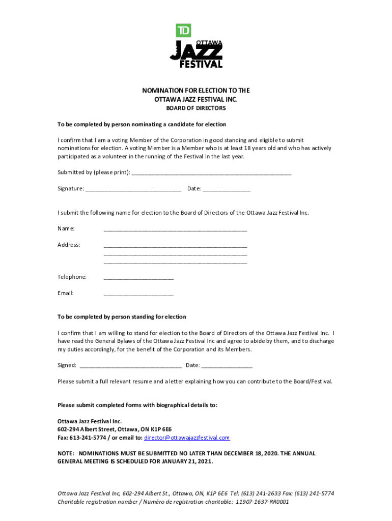 Get the free NOMINATION FOR ELECTION TO THE OTTAWA JAZZ ...