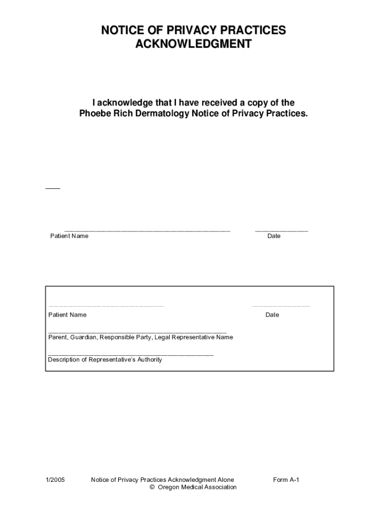 NOTICE OF PRIVACY PRACTICES ACKNOWLEDGMENT acknowledge that I have received a copy of the Phoebe Rich Dermatology Notice of Privacy Practices.3ULQWLQJRXUQDPHEHORZLQGLFDWHVRXKDYHUHDGXQGHUVWDQGDQGDJUHHZLWKWKLVGRFXPHQW