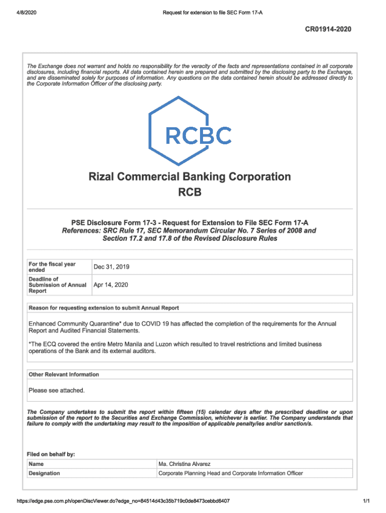SECURITIES AND EXCHANGE COMMISSION SEC FORM 17LC (COVID-19)NOTIFICATION OF INABILITY TO FILE SEC FORM 17A OR 17Q GENERAL INSTRUCTIONS 1. This is a special Form that may be filed during the period