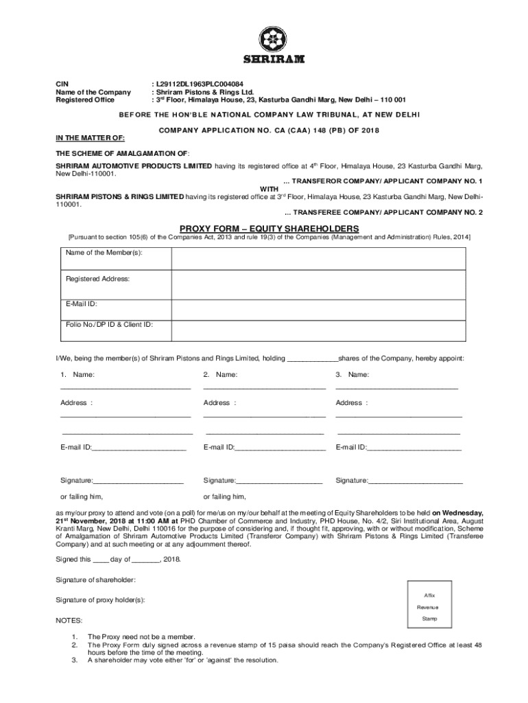 IN Name of the Company Registered Office: L29112DL1963PLC004084 : Sriram Pistons & Rings Ltd. 3rd Floor, Himalaya House, 23, Pasture Gandhi Mary, New Delhi 110 001BEFORE THE HOBBLE N NATIONAL COMPANY