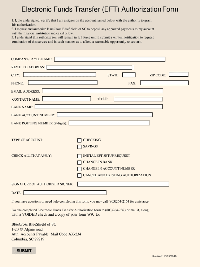 Get the free Electronic Funds Transfer ( EFT ) and Bank WireElectronic Funds Transfer (EFT) Autho...
