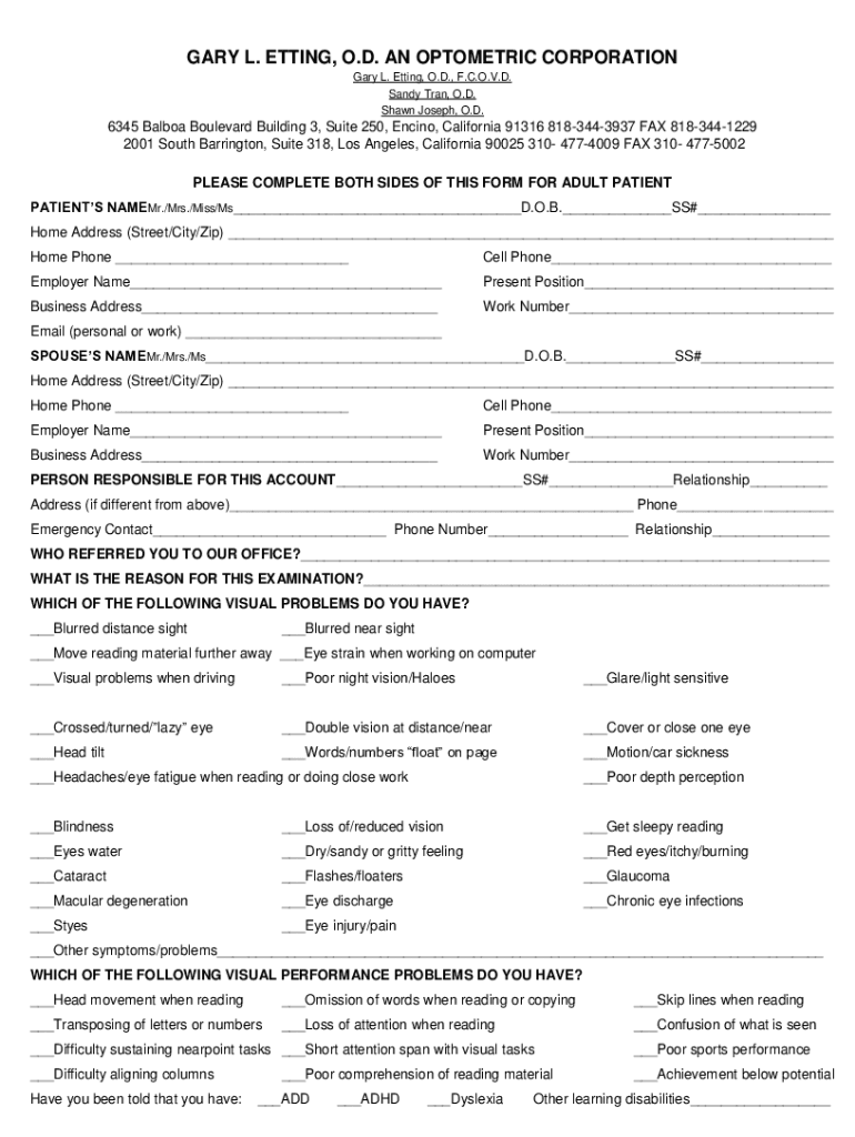 Get the free GARY L. ETTING, O.D. AN OPTOMETRIC CORPORATION WELCOME TO OUR ...