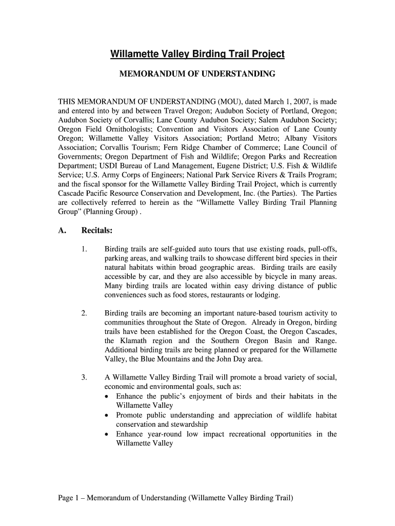 Get the free Willamette Valley Birding Trail MOU - Humboldt bCountyb Association bb - hcaog