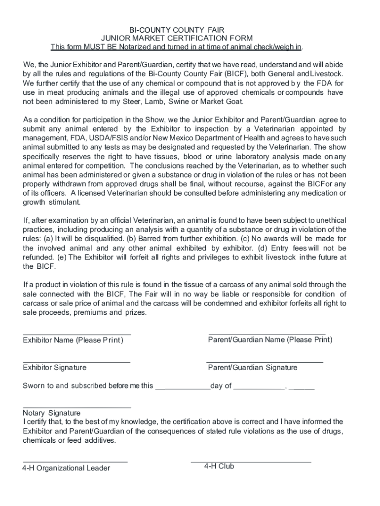 This form MUST BE Notarized and turned in at time of animal check/weigh in.