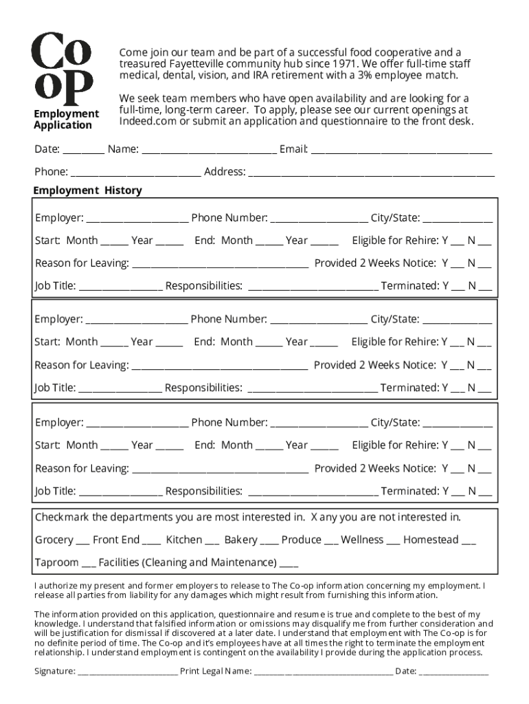 Come join our team and be part of a successful food cooperative and a treasured Fayetteville community hub since 1971. We offer full time staff medical, dental, vision, and IRA retirement with a 3%