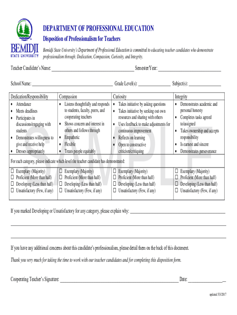 DEPARTMENT OF PROFESSIONAL EDUCATION Disposition of Professionalism for Teachers Beside State Universities Department of Professional Education is committed to educating teacher candidates who demonstrate