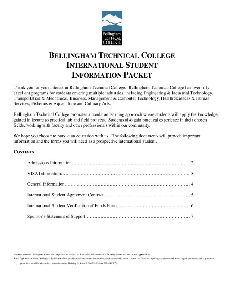 BELLINGHAM TECHNICAL COLLEGE INTERNATIONAL STUDENT INFORMATION PACKET Thank you for your interest in Bellingham Technical College. Bellingham Technical College has over fifty excellent programs for