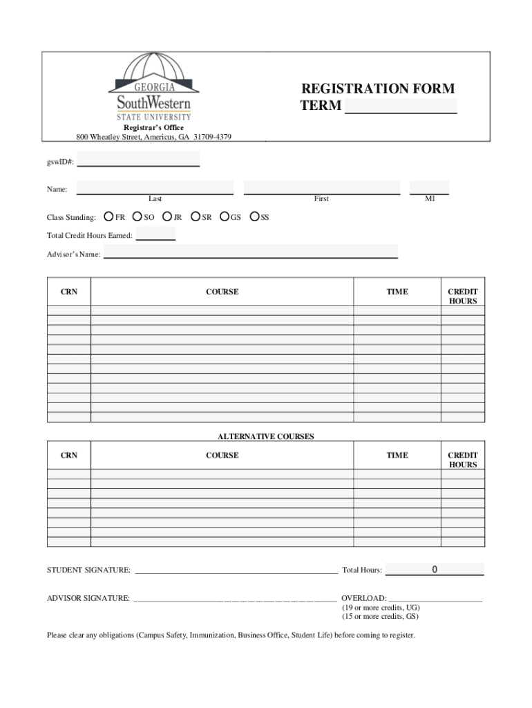 Please reset the form after you have printed it! How to use filling PDF EFormsREGISTRATION FORM TERM Registrars Office 800 Wheatley Street, Americas, GA 317094379PRINT FORREST FORMgswID#: Name: LastPass