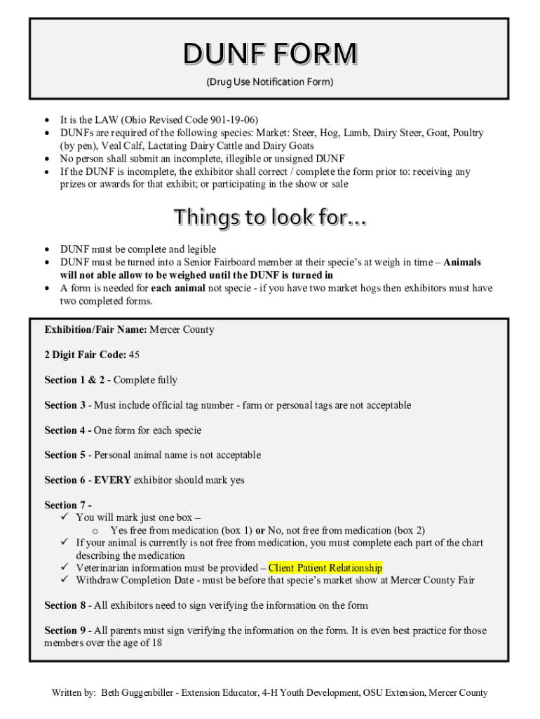 (DrugUseNotificationForm) It is the LAW (Ohio Revised Code 9011906) Dunes are required of the following species: Market: Steer, Hog, Lamb, Dairy Steer, Goat, Poultry (by pen), Veal Calf, Lactating