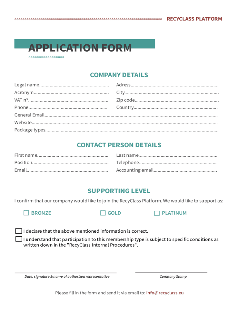 By filling out the application form, you can showcase your dedication to sustainable practices and potentially gain recognition and support from recyclass in your recycling initiatives.