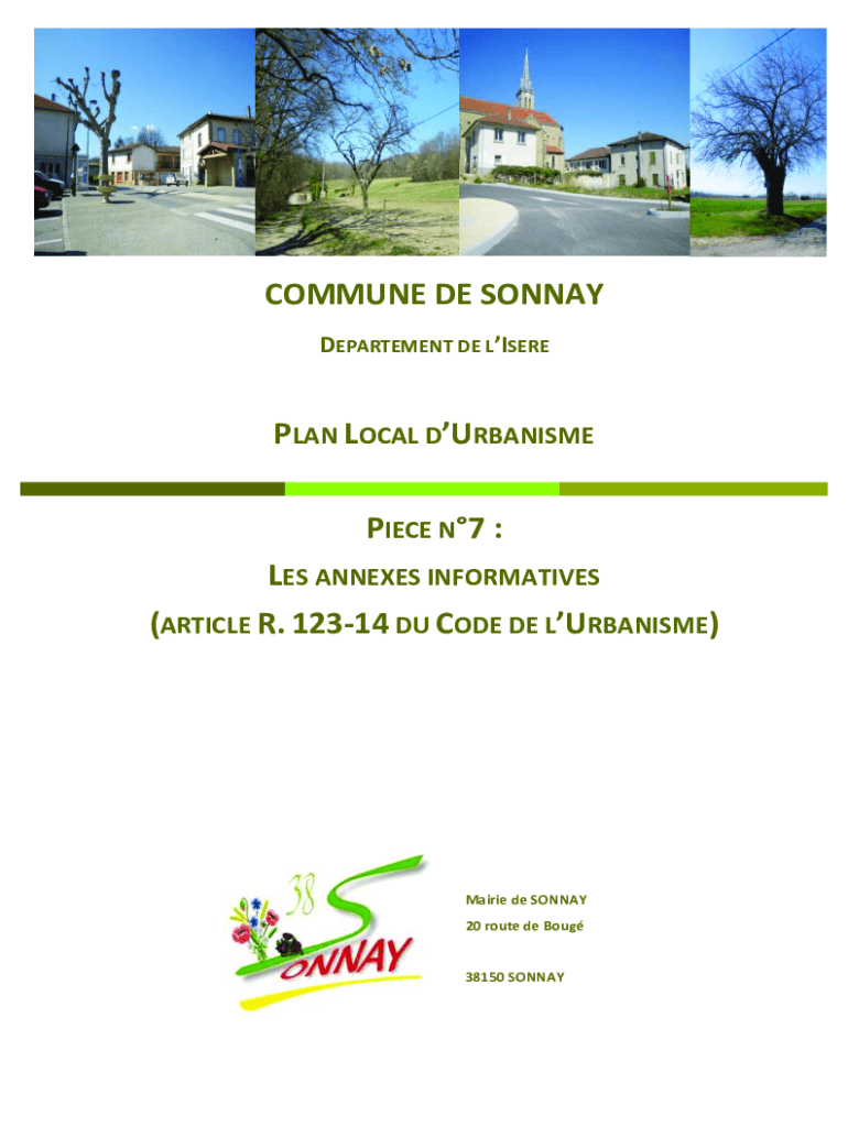 COMMUNEDESONNAY DEPARTEMENTDELISERE PLANLOCALDURBANISME PIECEN7: ANNEXES INFORMATIVE URBANISM) (ARTICLE.12314DU CODED ELU