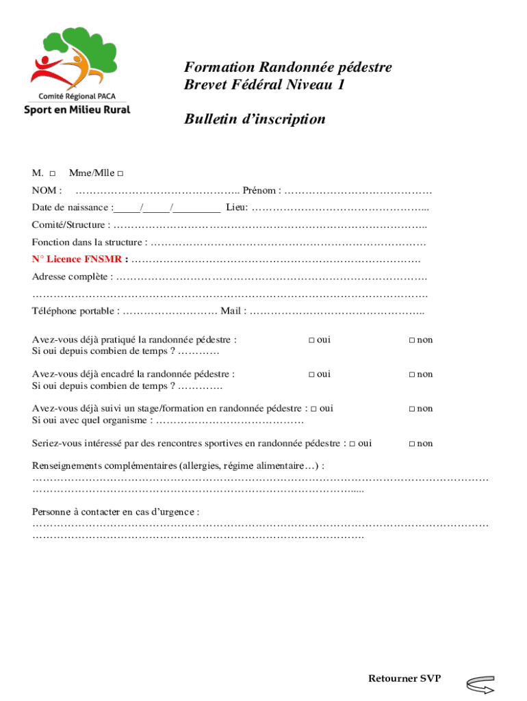 Obtenir le gratuit Bulletin d'inscription BF1 VTT - FNSMR