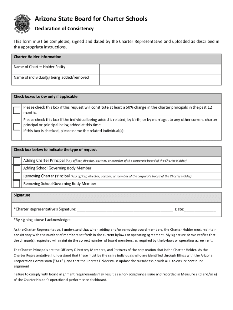 Get the free Declaration of Consistency - Arizona State Board for Charter ... - asbcs az
