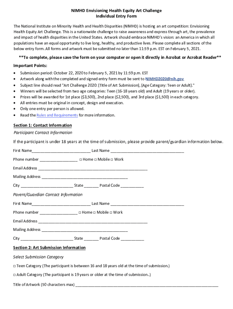 Get the free NIMHD Envisioning Health Equity Art Challenge Individual ...