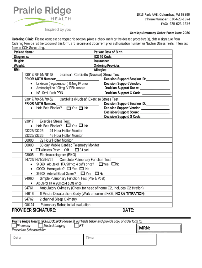 Cardiopulmonary Order Form June 2020