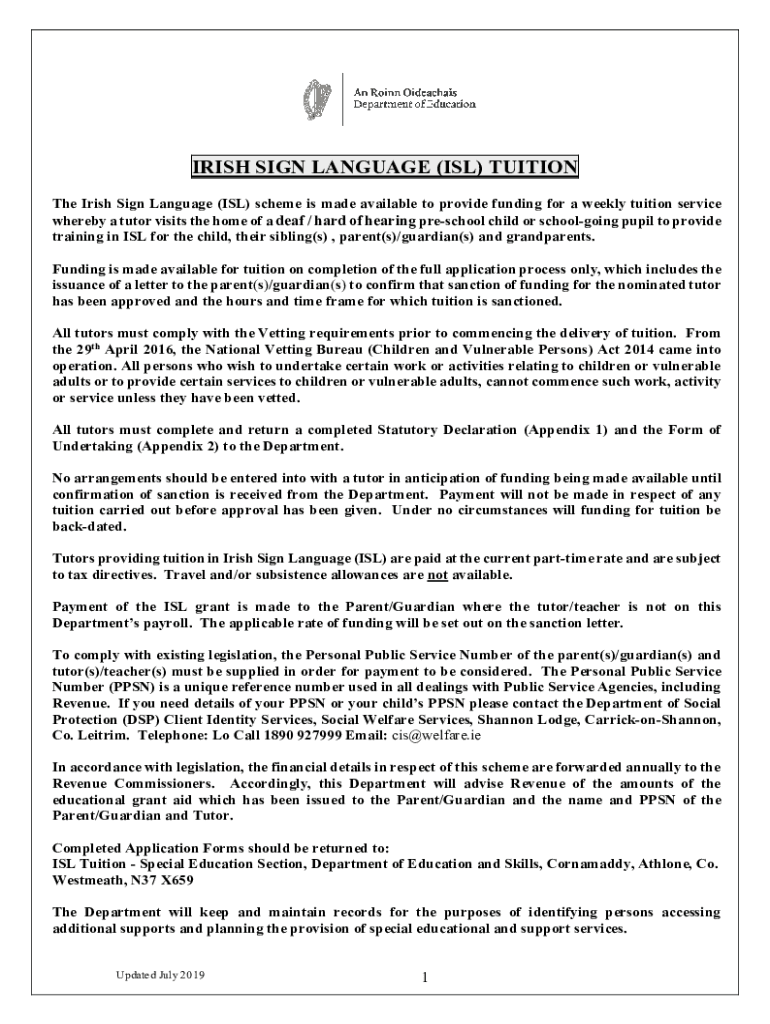 Get the free Irish Sign Language (ISL) Tuition Scheme - Department of ...
