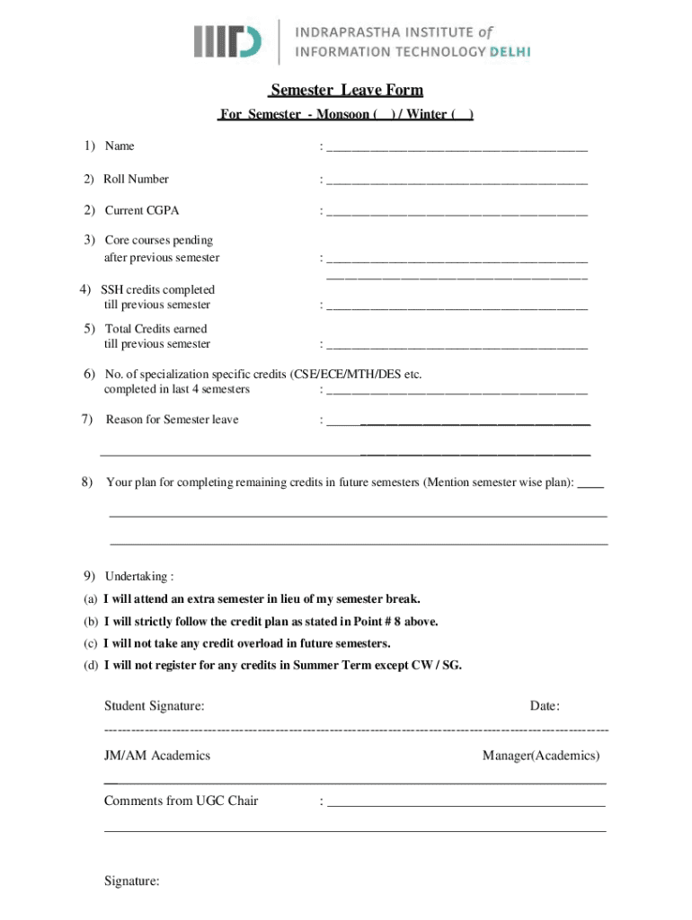 Get the free Semester Leave Form - Indraprastha Institute of ...