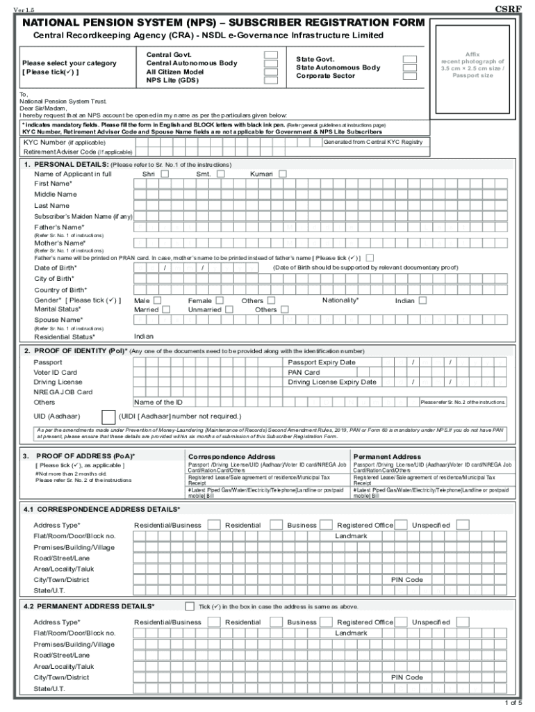 NPS Form CSRF VER stands for National Pension System Form Central Recordkeeping Agency Verification.