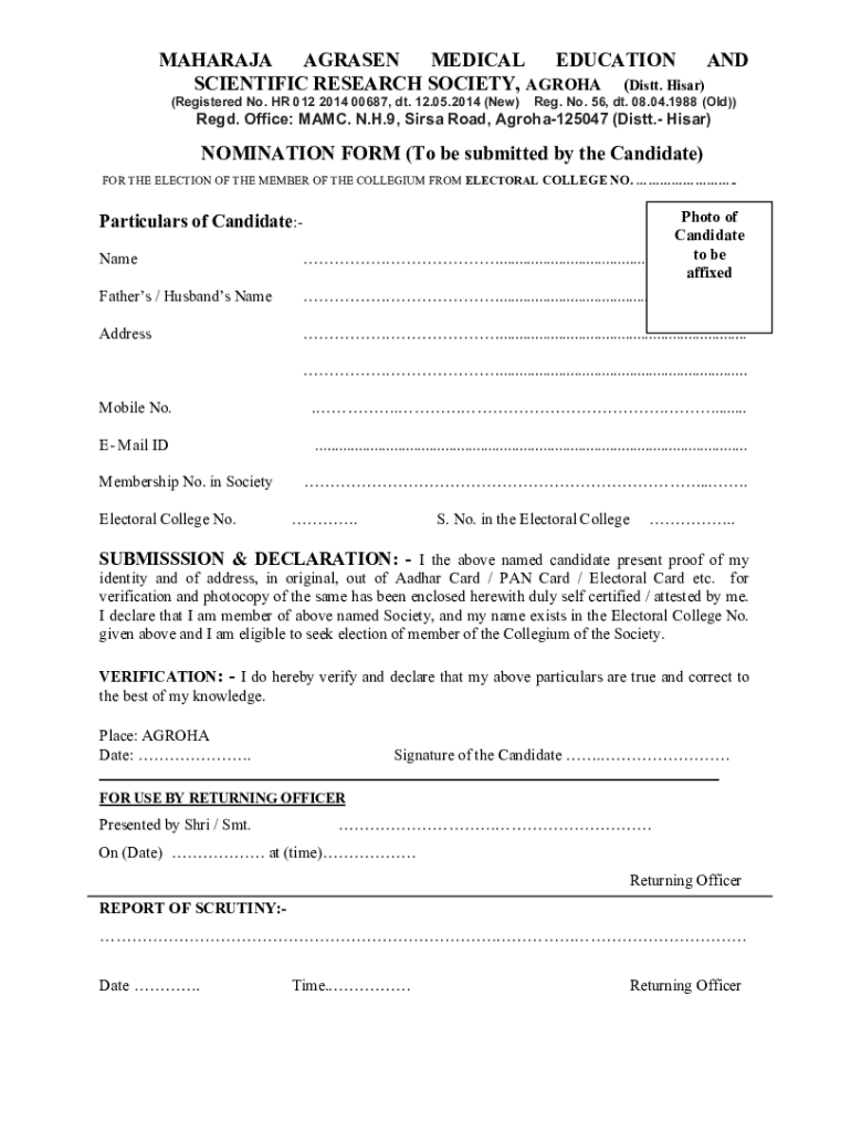 Get, Create, Make and Sign nomination form of society