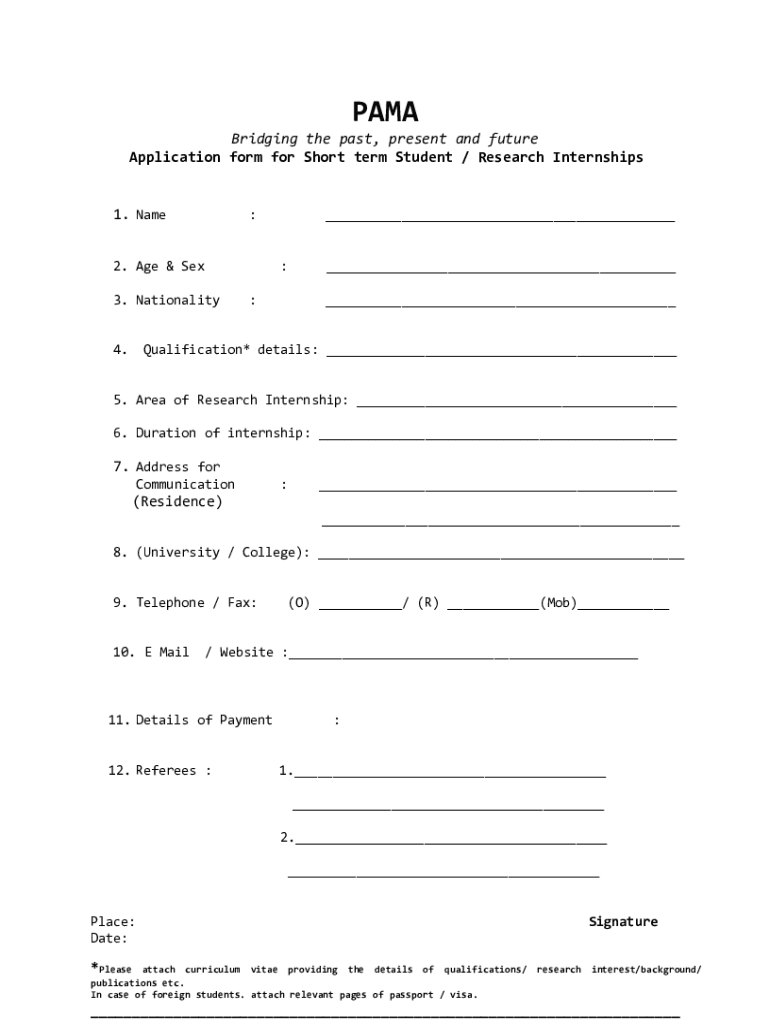 RAMA Bridging the past, present and future Application form for Short term Student / Research Internships1. Name:2. Age & Sex:3. Nationality4. Qualification* details: 5. Area of Research Internship: