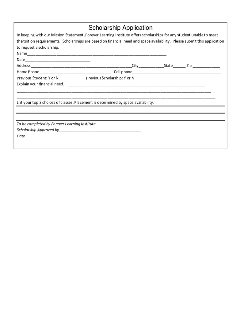 Get the free In keeping with our Mission Statement, Forever Learning Institute offers scholarship...