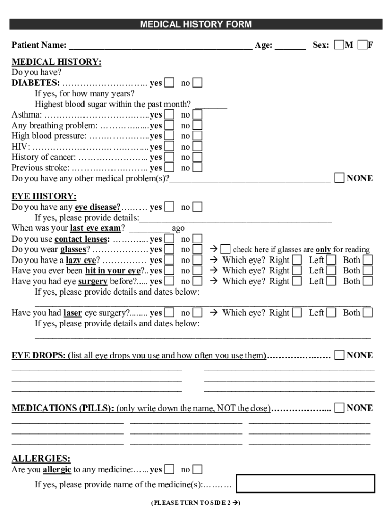MEDICAL HISTORY FORM Patient Name: Age: Sex:MEDICAL HISTORY: Do you have? DIABETES:. Yes no If yes, for how many years? The Highest blood sugar within the past month? Asthma: ... yes no Any breathing