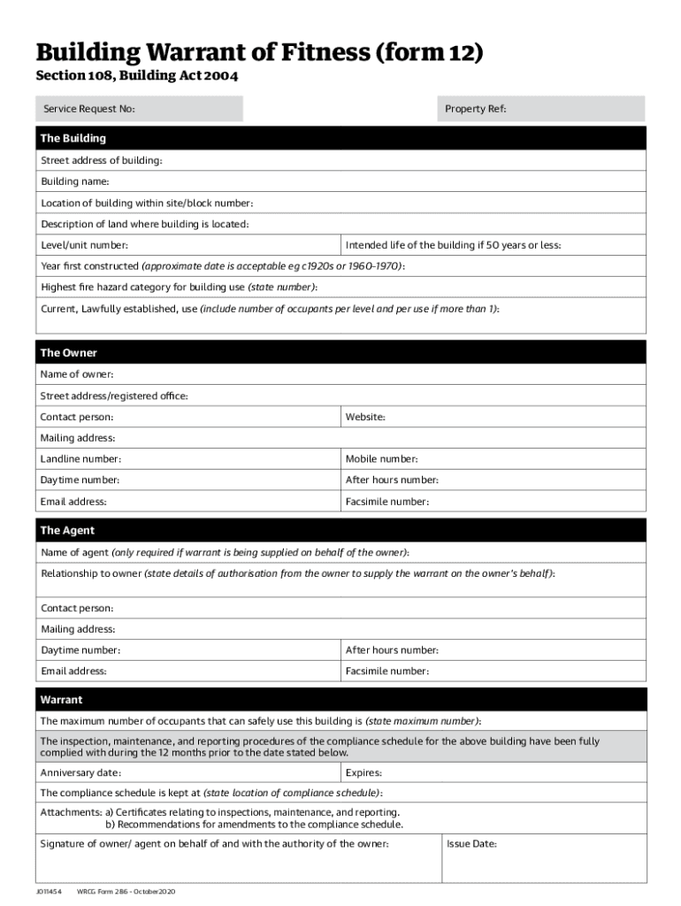 Get the free Building warrant of fitness - form 12. services - wellington govt