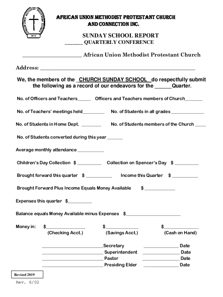 African Union Methodist Protestant Church and Connection INC.SUNDAY SCHOOL REPORT QUARTERLY CONFERENCE African Union Methodist Protestant Church Address: We, the members of the CHURCH SUNDAY SCHOOL