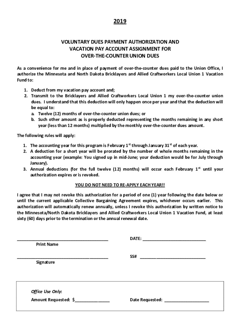 VOLUNTARY DUES PAYMENT AUTHORIZATION AND
