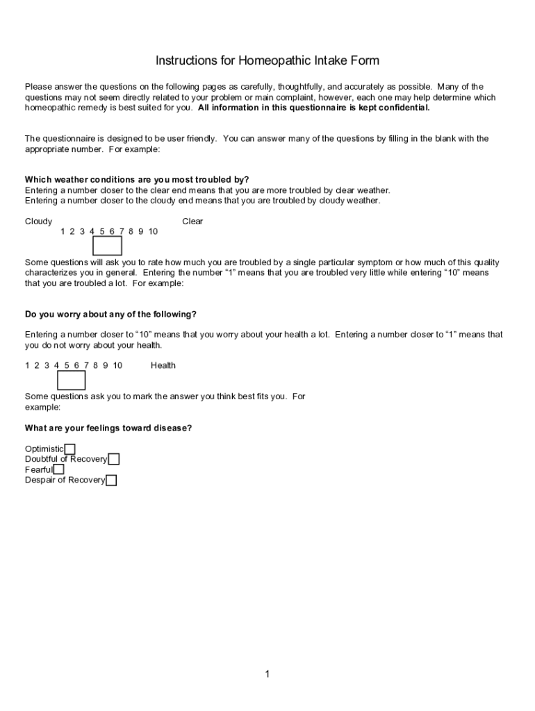 How to fill out instructions for homeopathic intake