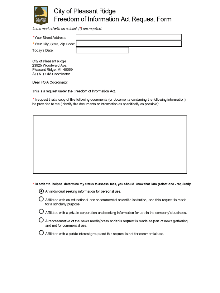 The purpose of a FOIA request form is to provide a mechanism for individuals to request information from government agencies in a transparent and accountable manner.