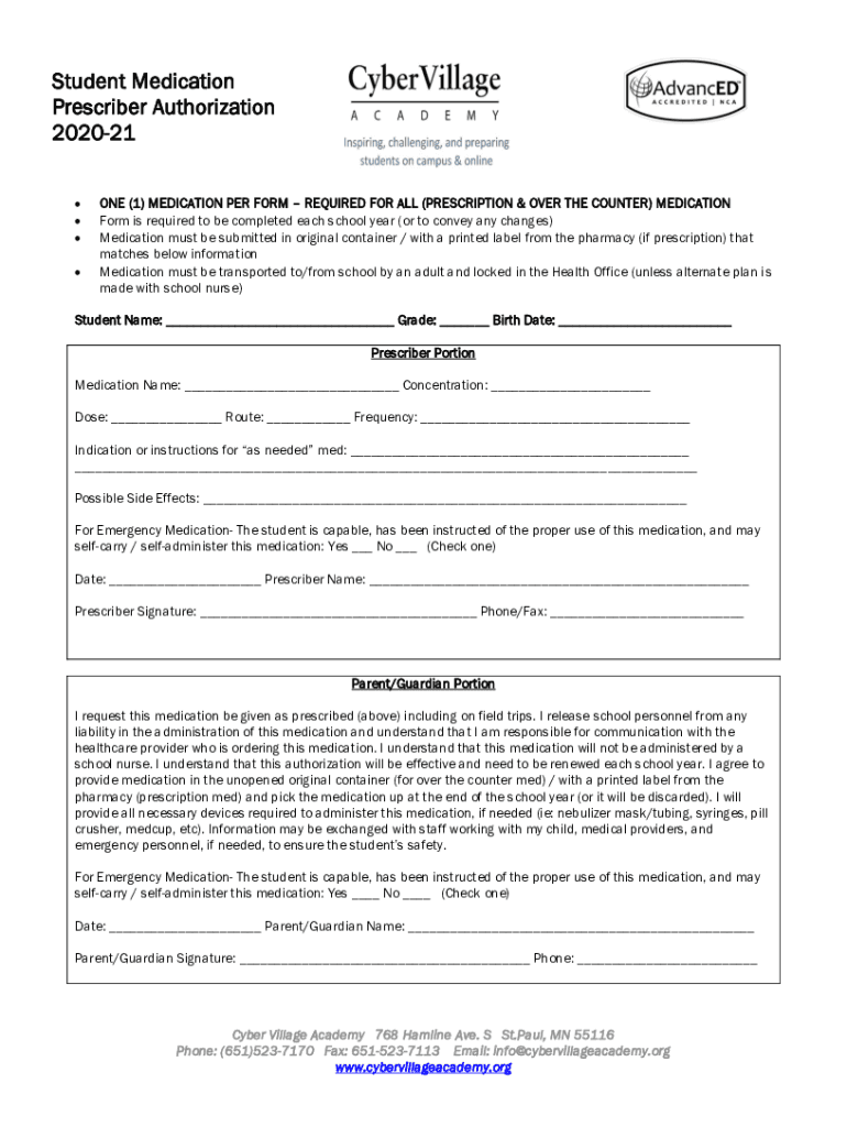 ONE (1) MEDICATION PER FORM REQUIRED FOR ALL (PRESCRIPTION & OVER THE COUNTER) MEDICATION