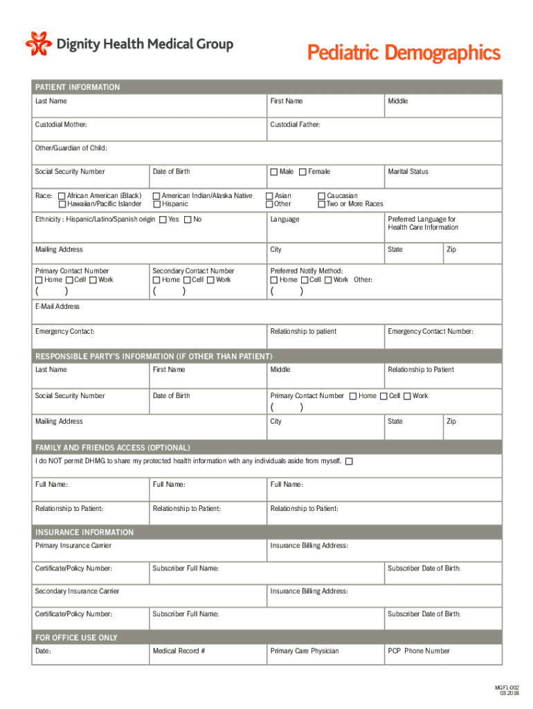 Pediatric Demographics - Dignity is not the form you're looking for?Search for another form here.