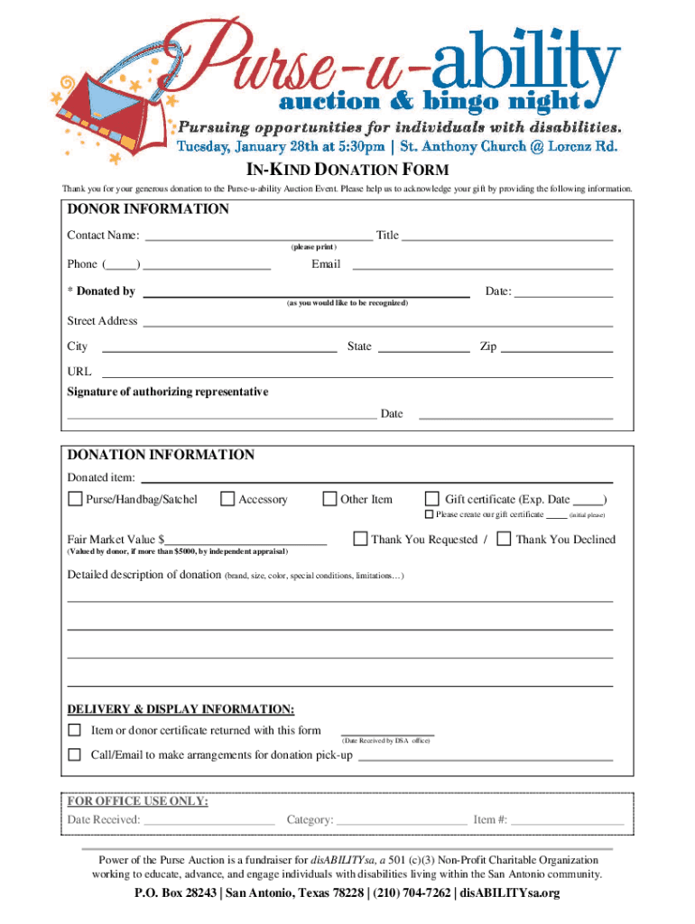 INKING DONATION FORM Thank you for your generous donation to the Permeability Auction Event. Please help us to acknowledge your gift by providing the following information. DONOR INFORMATION Contact