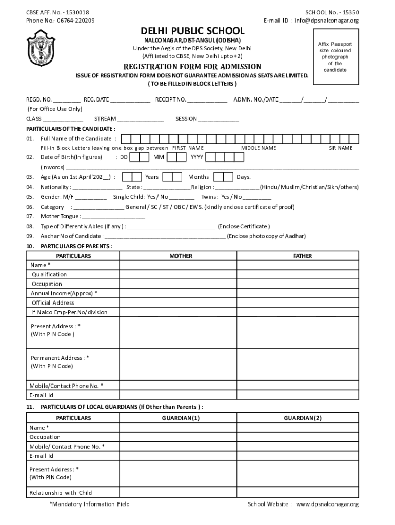 Get the free Download Registration Form - DELHI PUBLIC SCHOOL