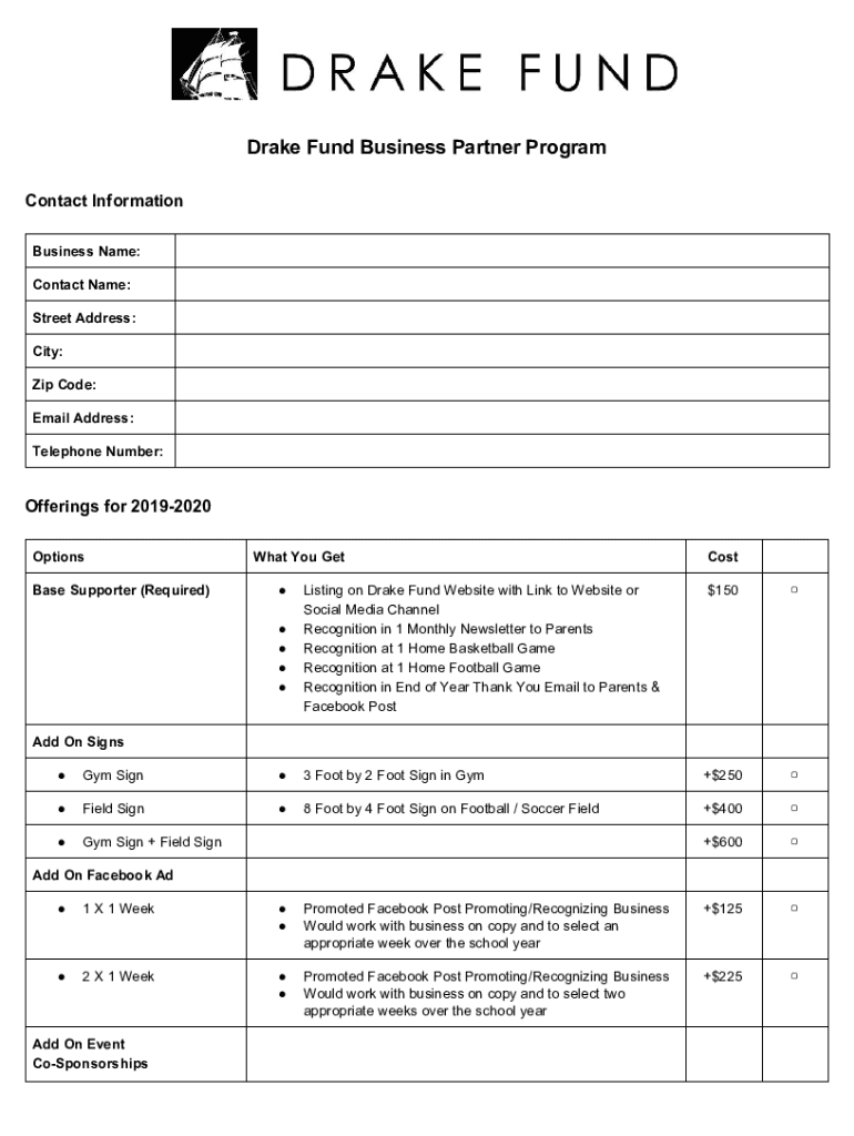Individuals or entities who wish to partner with the Drake Fund and contribute financially are required to file as a business partner.