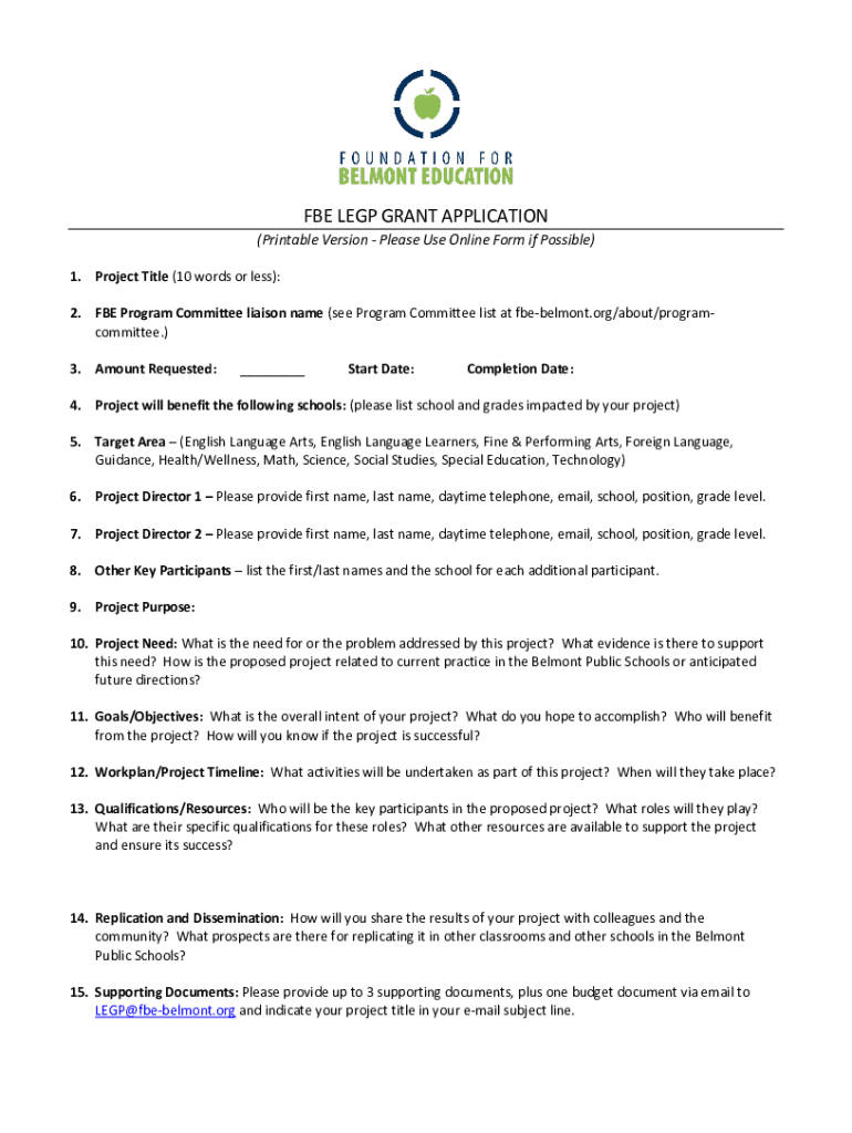 Get the free FBE LEGP Grant Application Form