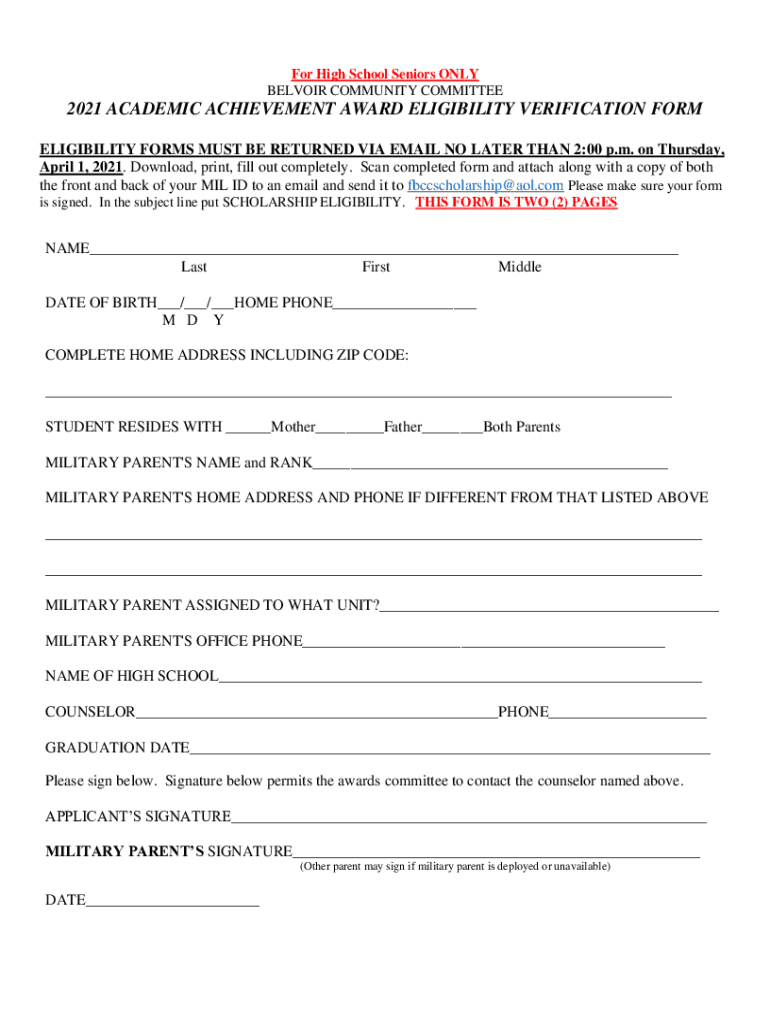 BEAUVOIR COMMUNITY COMMITTEE2021 ACADEMIC ACHIEVEMENT AWARD ELIGIBILITY VERIFICATION FORM