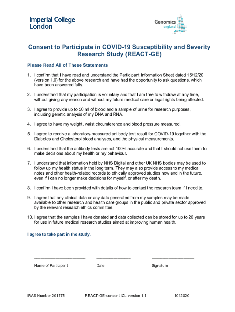 Consent to Participate in COVID-19 Susceptibility and Severity