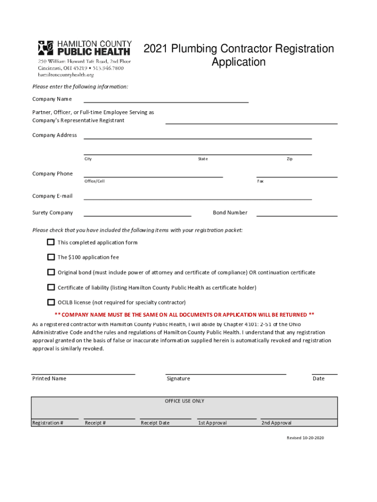 2021 Plumbing Contractor Registration