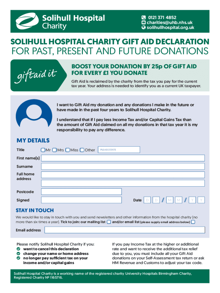 Get the free SOLIHULL HOSPITAL CHARITY GIFT AID DECLARATION FOR PAST ...