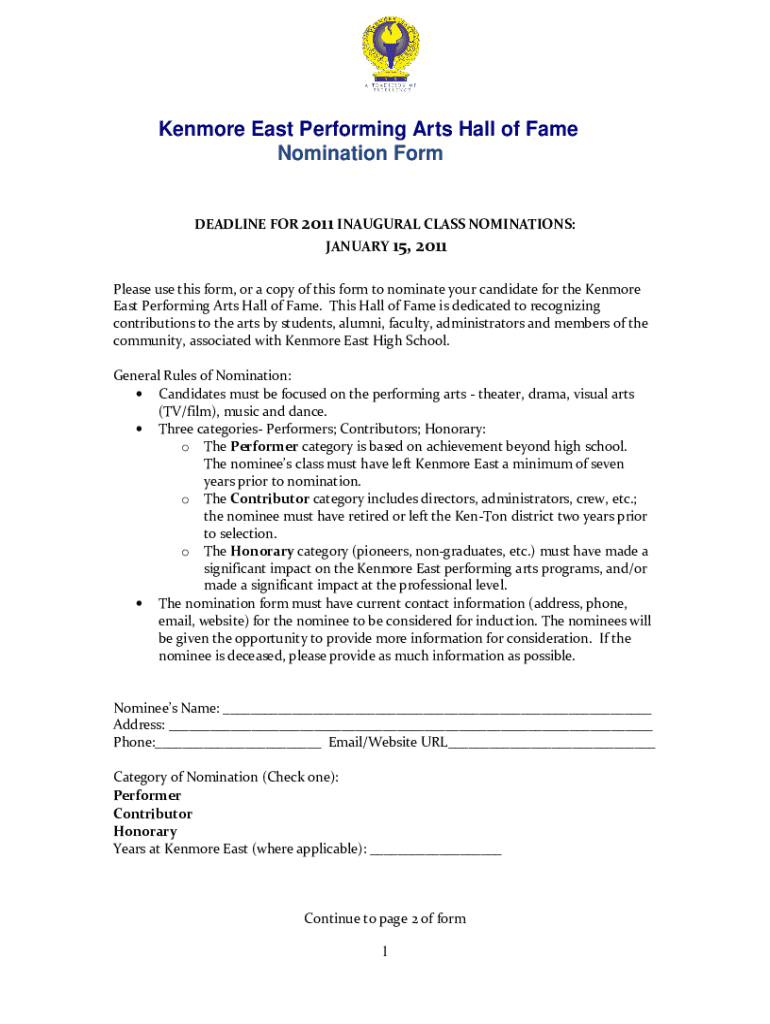 Get the free Nomination Form Kenmore East Performing Arts Hall of Fame2