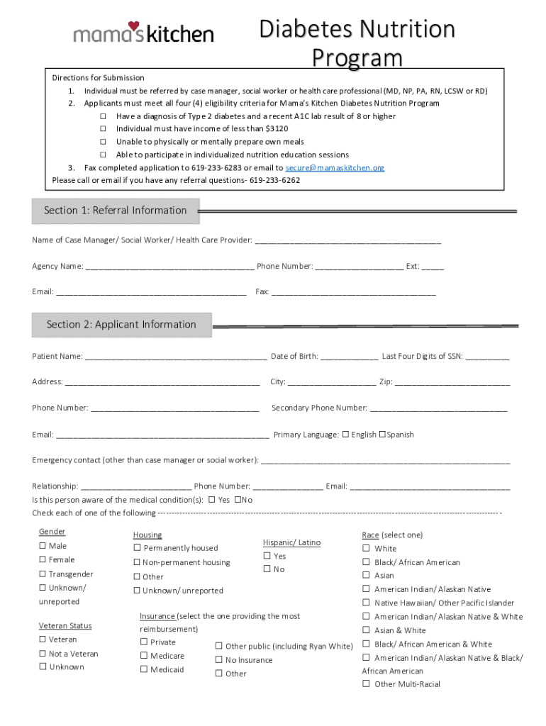 Diabetes Nutrition Program Directions for Submission 1. Individual must be referred by case manager, social worker or health care professional (MD, NP, PA, RN, LCSW or RD) 2. Applicants must meet